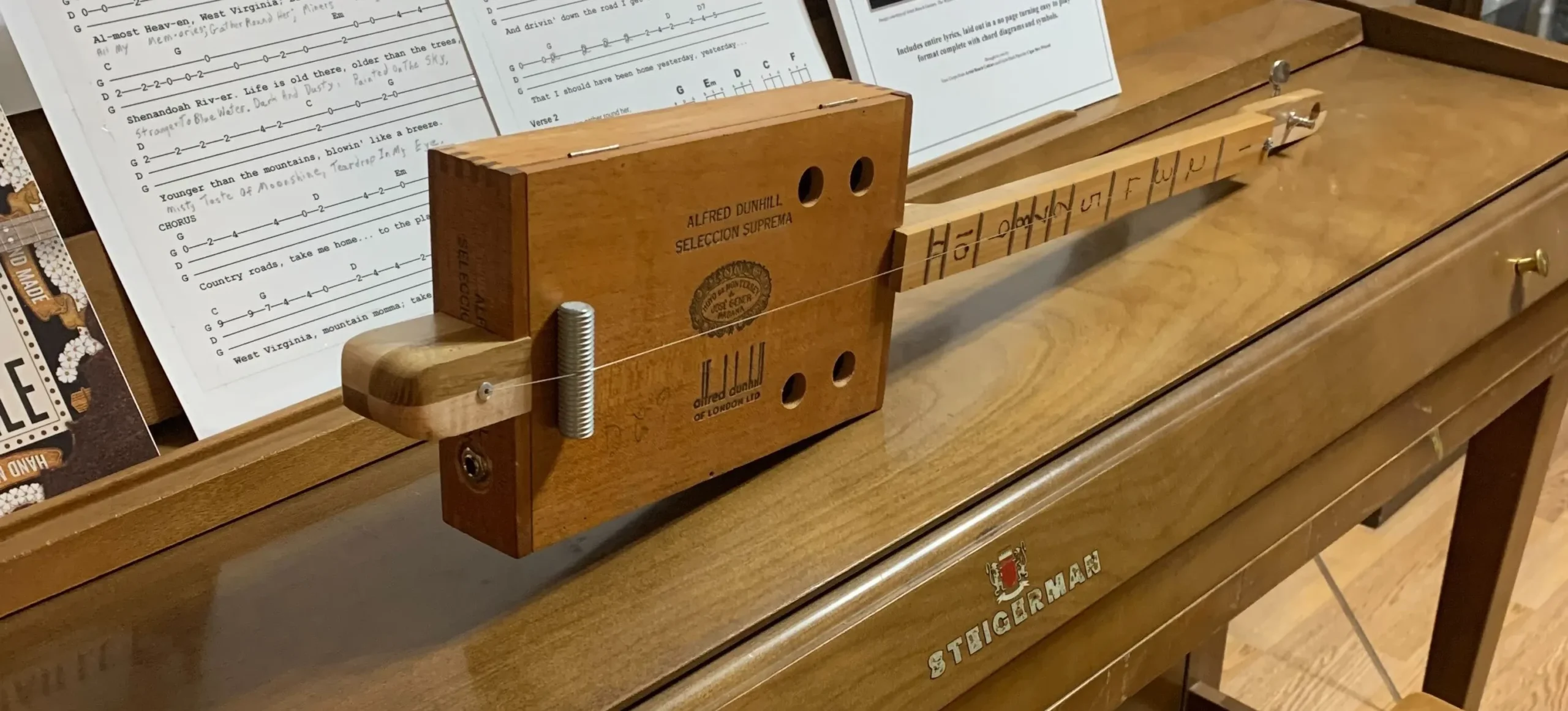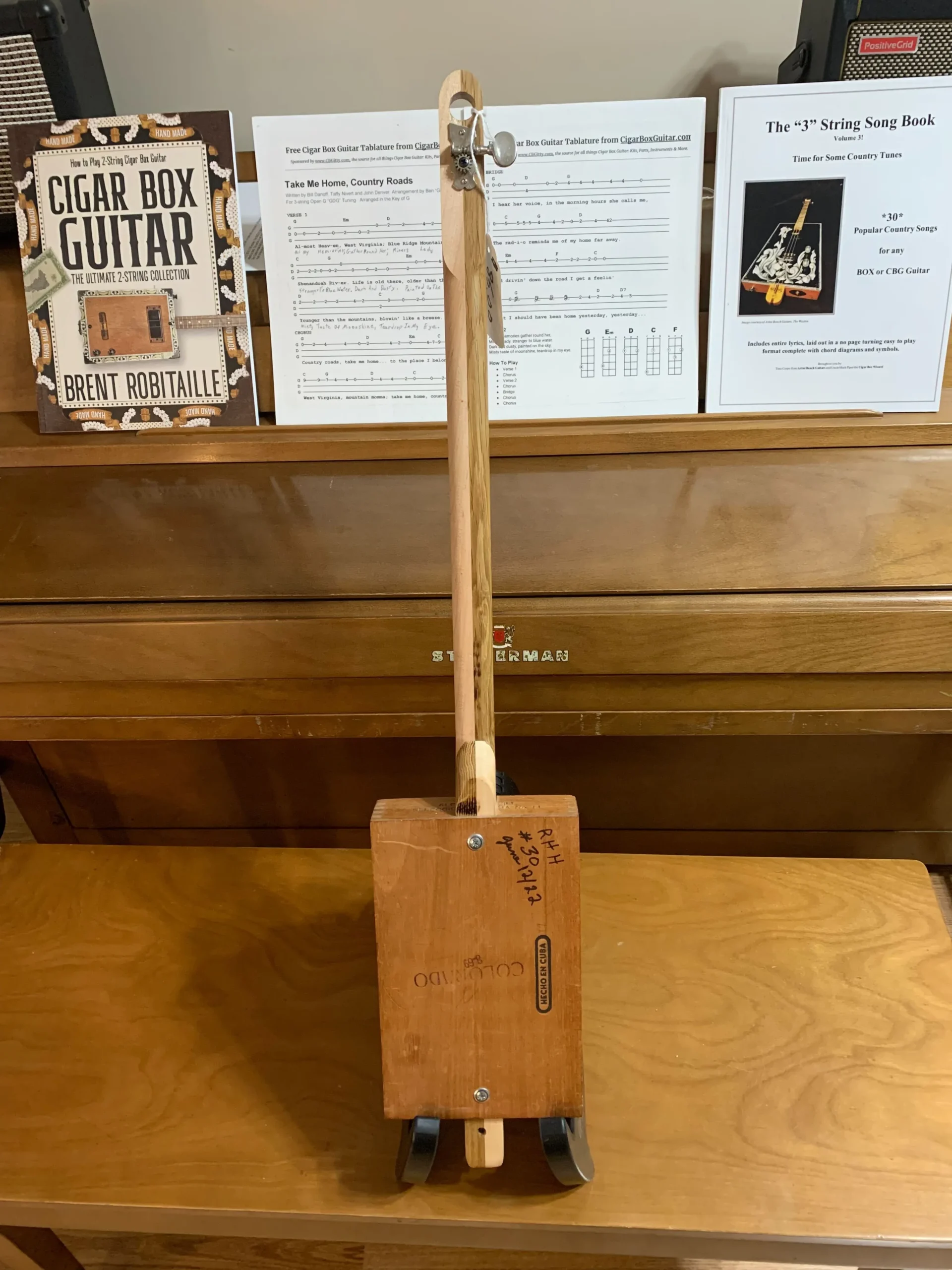 This Diddley Cigar Box Guitar is ready to find its forever-play partner. To make a play date with this one-of-a-kind guitar, you can click “add to cart” or email bobs3stringers@outlook.com