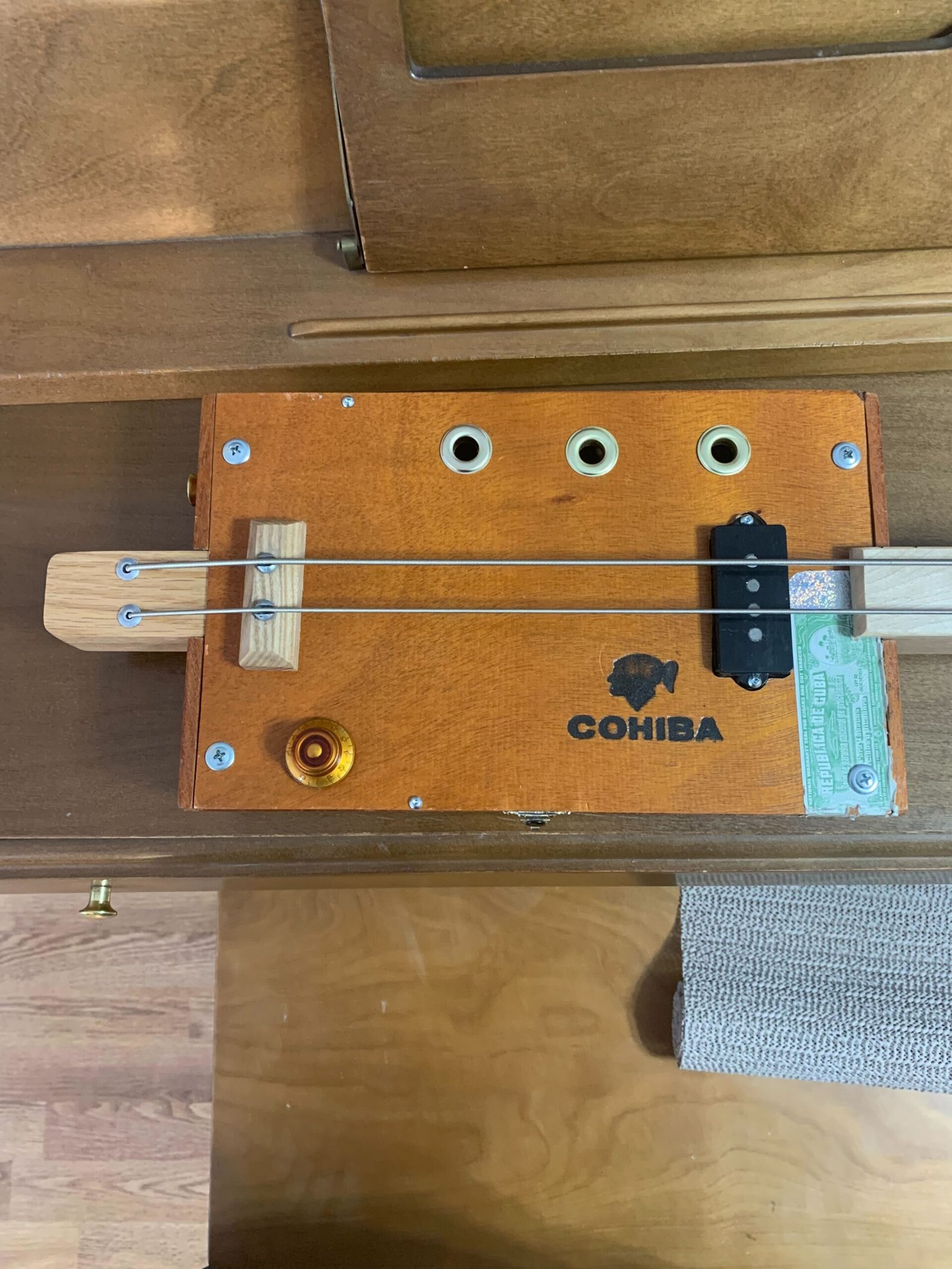 - Electric/Acoustic 3 string cigar box guitar