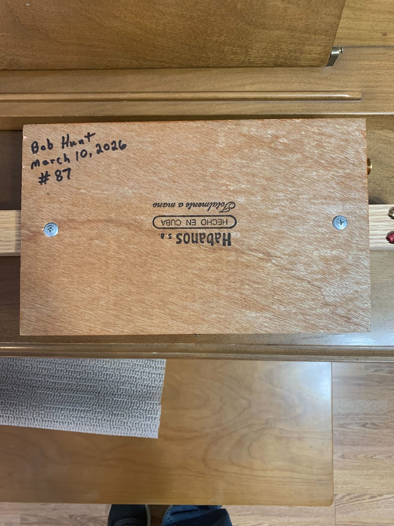 This Cohiba Left-Handed 3 String Cigar Box Guitar is made with a Brick House Cigar box and is signed and dated by Bob. If you have any questions about this Cigar Box guitar email Bob @ bobs3stringers@outlook.com. This Guitar is handcrafted by Bob Hunt in his shop in Manitou Manitoba Canada.