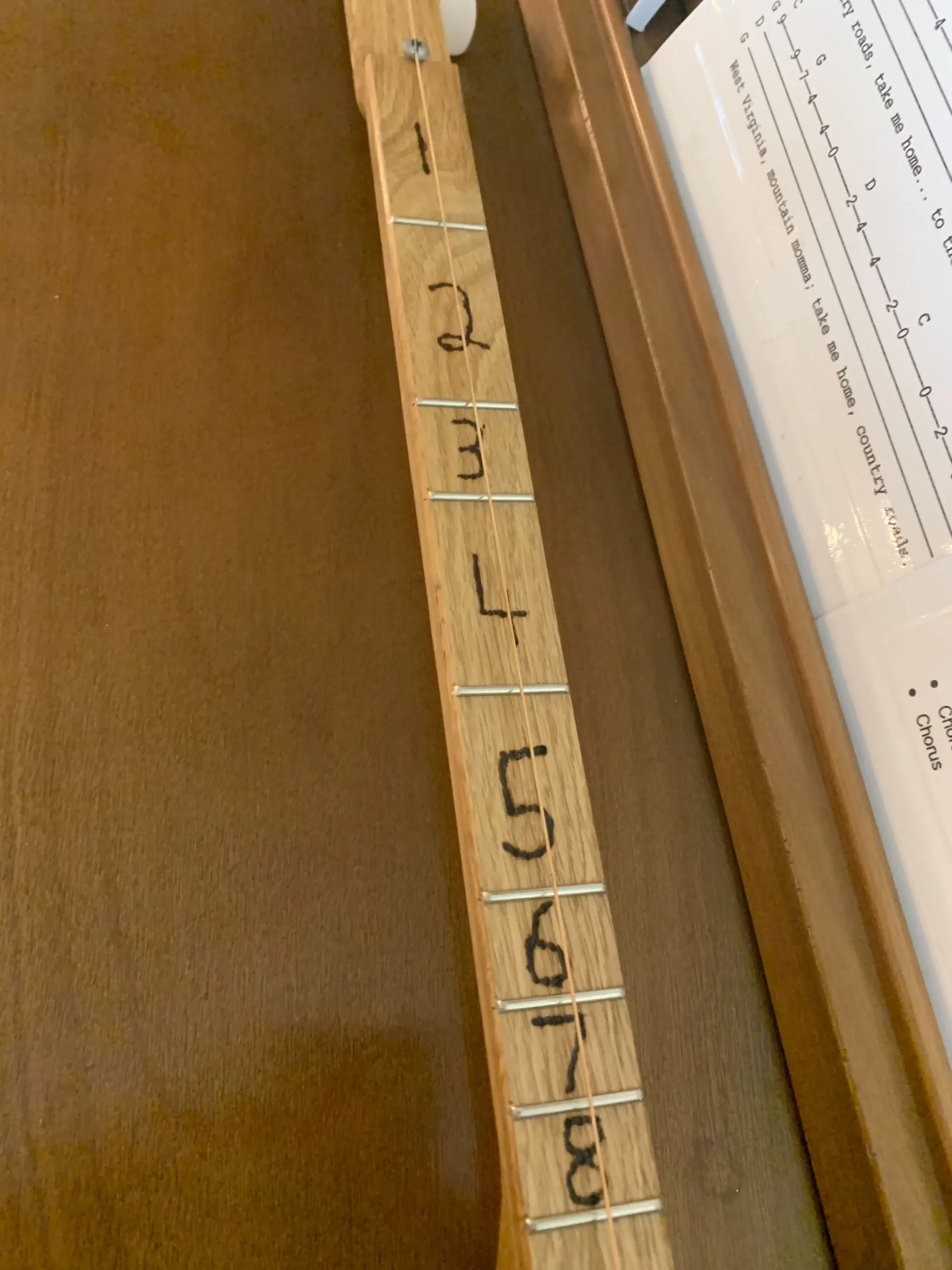 - tuned to D and diatonically fretted